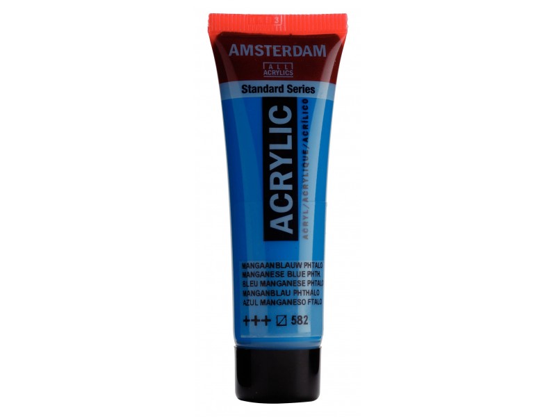 Το ακρυλικό χρώμα της Amsterdam Standard Series σε Manganese Blue Phthalo (582) είναι ένα ημιδιαφανές χρώμα με εξαιρετική αντοχή στο φως (+++).