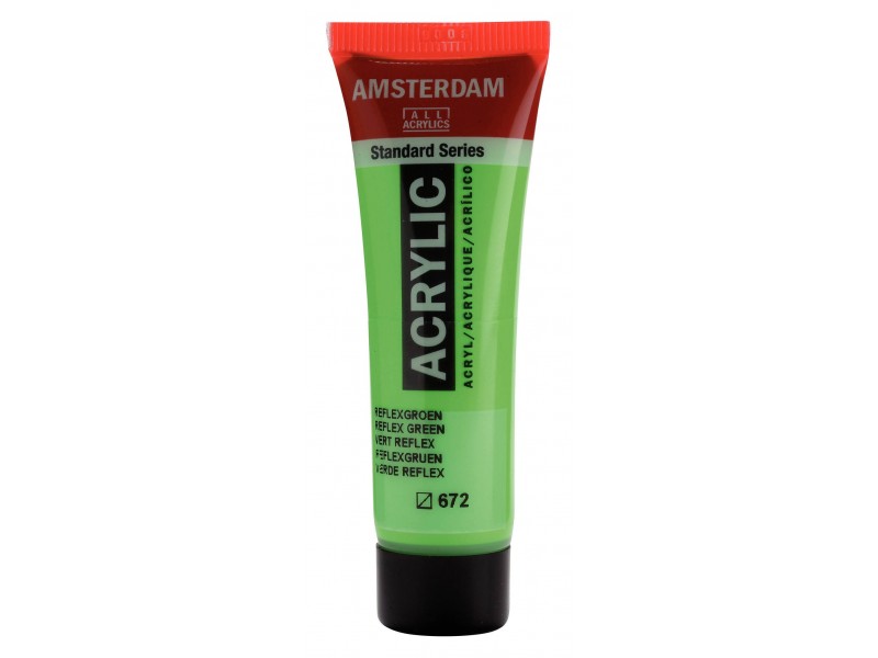 Το ακρυλικό χρώμα της Amsterdam Standard Series σε Reflex Green (672) είναι ένα ημιδιαφανές χρώμα χωρίς αντοχή στο φως (˚).