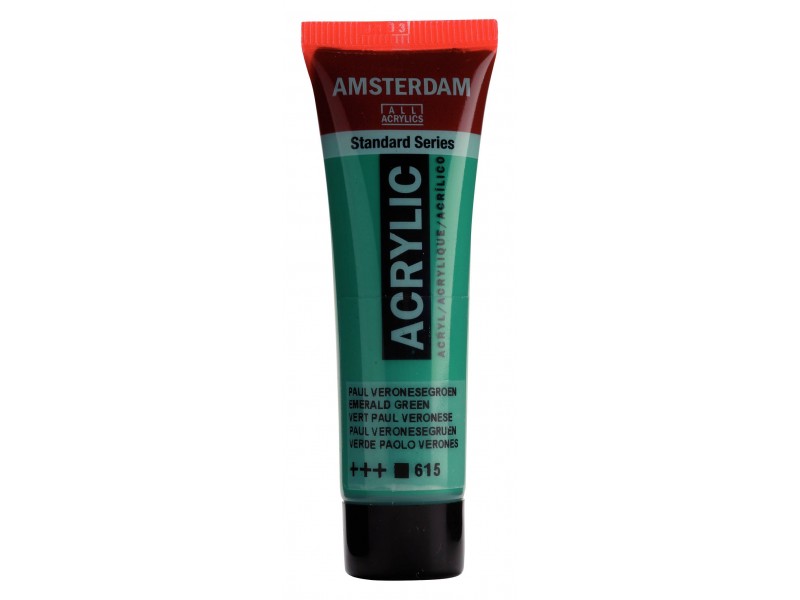 Το ακρυλικό χρώμα της Amsterdam Standard Series σε Emerald Green (615) είναι ένα αδιαφανές χρώμα με εξαιρετική αντοχή στο φως (+++).
