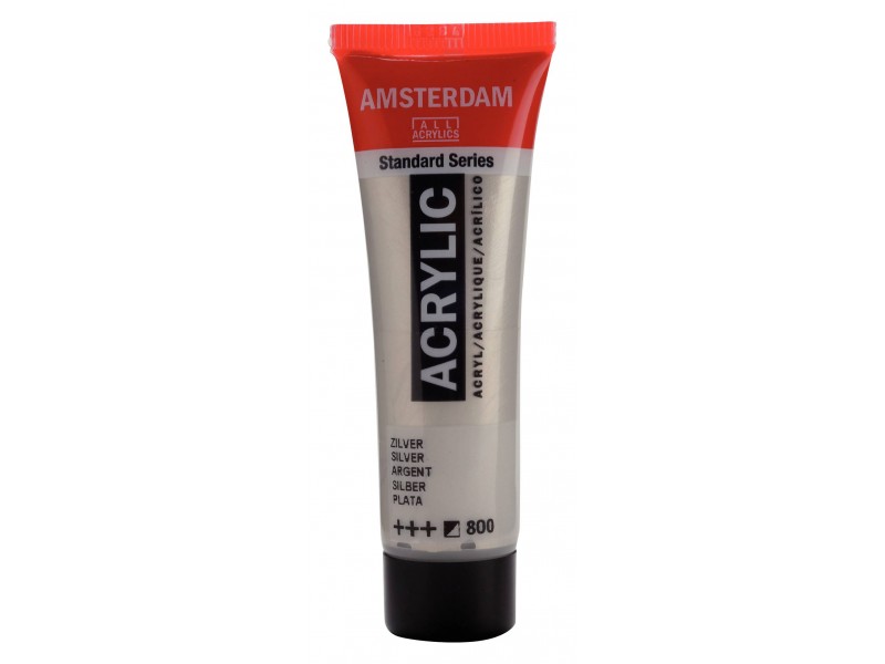 Το ακρυλικό χρώμα της Amsterdam Standard Series σε ασήμι (800) είναι ένα ημι-αδιαφανές χρώμα με εξαιρετική αντοχή στο φως (+++).