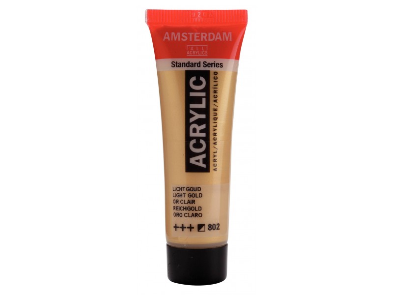 Το ακρυλικό χρώμα της Amsterdam Standard Series σε ανοιχτό χρυσό (802) είναι ένα ημι-αδιαφανές χρώμα με εξαιρετική αντοχή στο φως (+++).