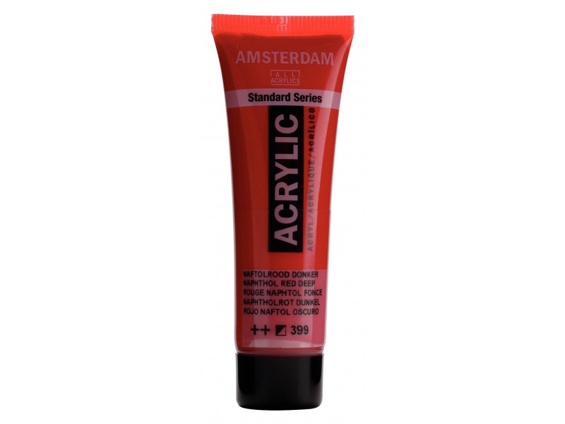 Το ακρυλικό χρώμα της Amsterdam Standard Series σε κόκκινο Naphthol βαθύ (399) είναι ένα ημι-αδιαφανές χρώμα με πολύ καλή αντοχή στο φως (++).