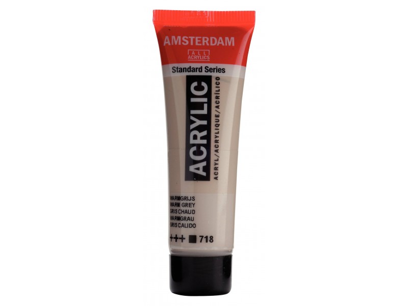 Το ακρυλικό χρώμα της Amsterdam Standard Series σε ζεστό γκρι (718) είναι ένα αδιαφανές χρώμα με εξαιρετική αντοχή στο φως (+++).
